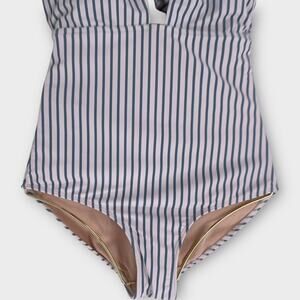 Albion Top Knot Stripe Open Back Keyhole One Piece Striped Swimsuit Blue White