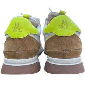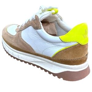 Madewell Womans Sneakers Leather 7.5 White Tan Neon Yellow Kickoff Trainers