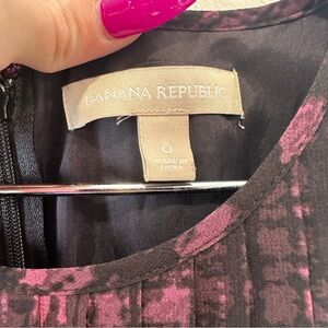 Banana Republic Pleated Midi Dress – Black & Magenta Print, Size 0