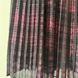 Elegant and effortlessly chic, this Banana Republic sleeveless midi dress features a modern black and magenta abstract print with beautiful accordion pleating throughout. The elastic waist creates a flattering shape, while the lightweight overlay gives graceful movement.