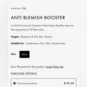 Function: It is a liquid booster formulated to treat blemishes through three stages: prevention, targeting active breakouts, and post-blemish care. It is intended to regulate sebum production, refine pores, and reduce breakouts.