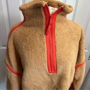 Cozy tan jacket with orange accents. Features a half-zip front and relaxed fit. Perfect for layering. No tags. Great condition!