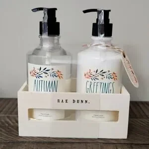 🍁🍎Rae Dunn "Autumn Greetings" Hand Soap & Lotion Duo Cranberry Apple Scented