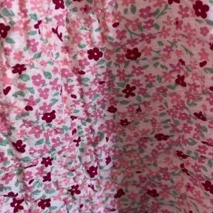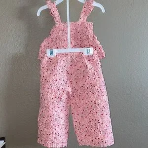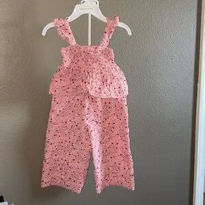 Charming jumpsuit with pink and red floral design. Ideal for playful outings.