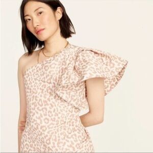 NWT J. Crew One shoulder ruffle dress animal print Size 2. Condition is new. Mini Lenght. Dress has side zipper. Please let me know if you have any questions