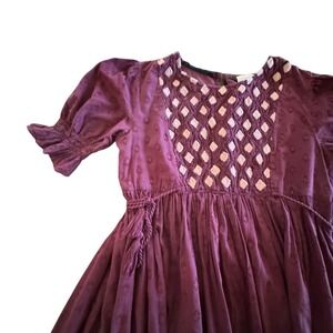 This gorgeous dress is perfect for cottagecore and boho lovers! Features intricate embroidered detailing that adds romantic charm and visual interest. Lined throughout and the details are precious. Smocked bodice provides a flattering, comfortable fit that moves with you. Flowy midi length is elegant and versatile.