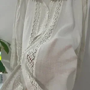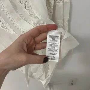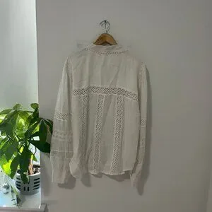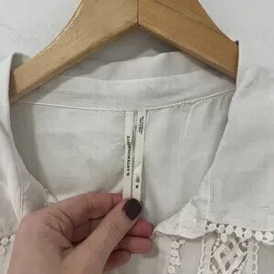 By Anthropologie Cream White Eyelet Cutout Button Up Top Size XL
