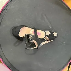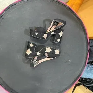 Stylish black heels with gold star accents. Perfect for a night out.