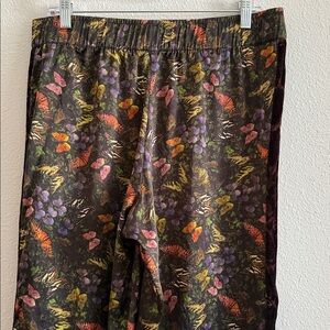Johnny Was Silk Butterfly Floral Pants Black Size Medium