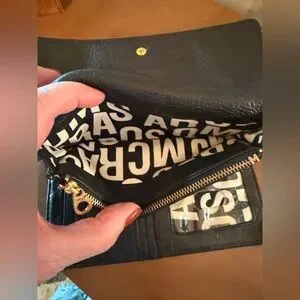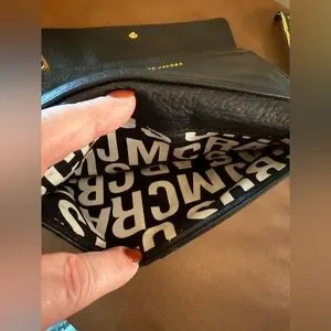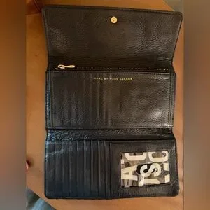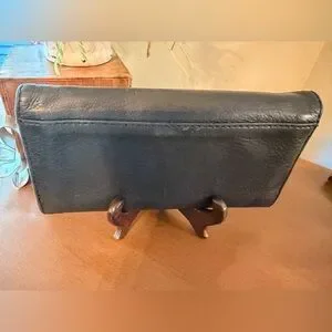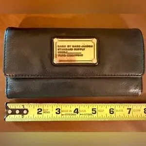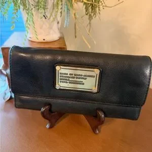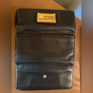 Stylish workwear long wallet. Features black buttery soft leather with gold accents. Iconic brand plate. This wallet is gorgeous!