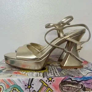 Stylish gold platform sandals with an ankle strap. Brand new. Never worn. Ordered the wrong size. Perfect for a night out!
