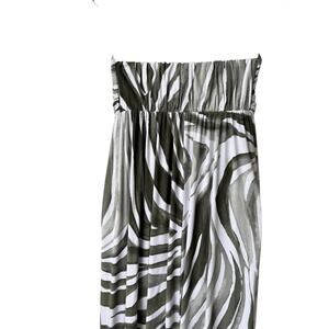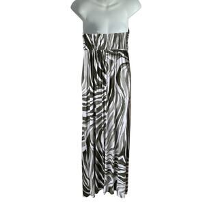 Tommy Bahama Strapless Maxi Dress Women's Large Green White Tropical Zebra Print