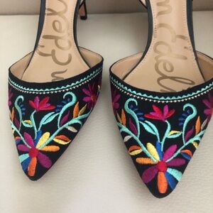 EUC Sam Edelman Black Suede Leather Shoes with embroidery embellishments