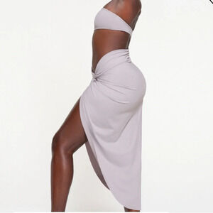 SKIMS Recycled Swim Sarong Skirt Chrome Size XL Stretch