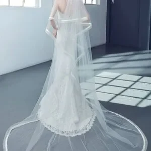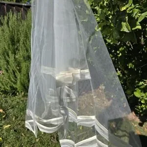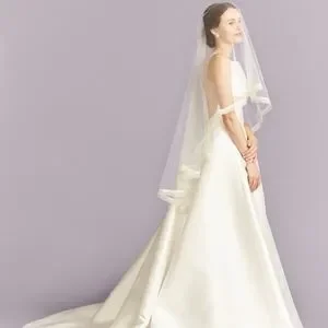 Elegant off white wedding veil by Peter Langner. Features a flowing ,delicate veil. This is the most sought after Peter Langner veil. It can elevate any look! The perfect accessory, which makes up the whole look. It is brand new, just took it out of package for pictures. Color is off white, satin trim with organza. Double layer STUNNING 😍 ✨️ It is priced over 1k. Length is about 39" inches