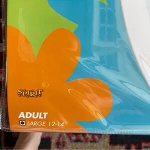 Bright orange knit top, burgundy / maroon woven skirt, orange socks, with glasses. Only worn once.