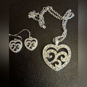 Silver tone Heart Pendant Necklace and Earring Set