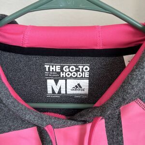 Crafted for comfort and style, this adidas Hoodie in a medium size is a versatile addition to any woman's activewear collection. The pullover features a soft pink color accented with bold lettering, offering a fashionable edge to your workout gear or casual outings.