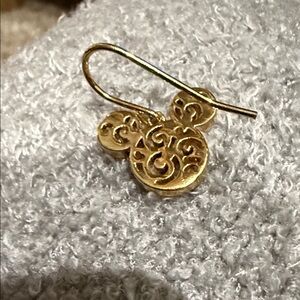 Elegant golden earrings featuring a Mickey Mouse swirl design. On fish hook backs. Perfect for adding a touch of whimsy to any outfit. New 1 inch clear crystal stone’s gold plated.