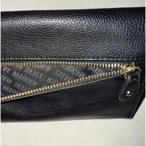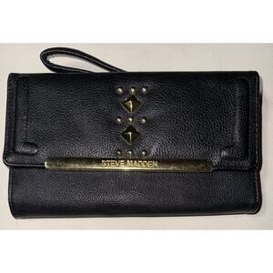 Elevate your style with this chic Steve Madden black wristlet. Perfect for carrying your essentials in style.