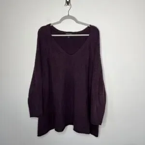 Eileen Fisher Sweater Womens 3X Purple Organic Cotton V Neck Oversized Tunic