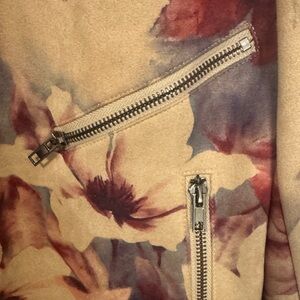 Solitaire Autumn Floral Bomber Jacket - Beige and Burgundy
