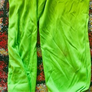 Transform your child into Yoshi from Super Mario Bros. with this vibrant green costume. Removable shell at back. Perfect for parties and imaginative play and Halloween. Some stains on front chest, knee, and back leg. A snagged area in back left sleeve. Separate head mask.