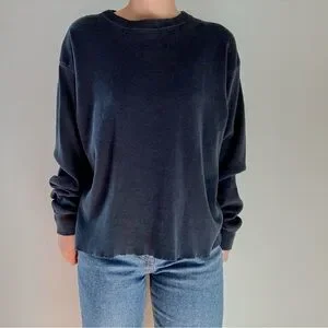 Thick and oversized long-sleeve top with a raw hem in navy blue.