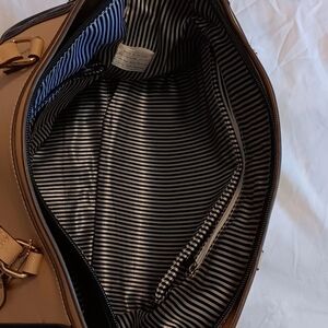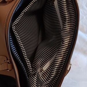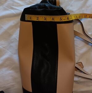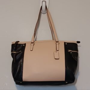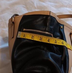 This stylish tote bag features a sophisticated black and beige design, perfect for any occasion. Its spacious interior and chic look make it a must-have accessory and with zippered side pockets and several compartments inside.