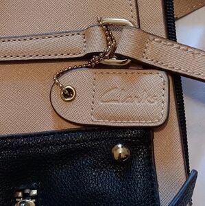 Clark Tote Bag Beige-Black Genuine Leather Women