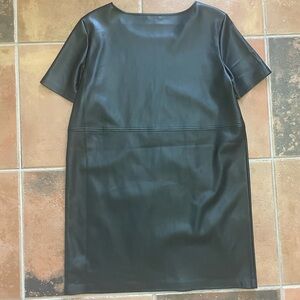 Searching for your new go-to tee dress? This relaxed crew neck mini dress, made using buttery faux leather fabric, features a no-show hemline, and seam detailing at the waist and hips for a flattering fit.
