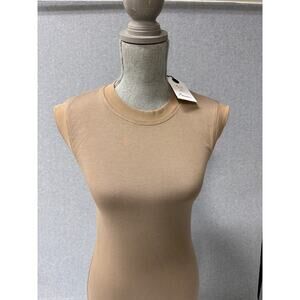 Rowan Ellis Contour Tank Sleeveless Slit Cotton Midi Dress in Stone Beige S NWT