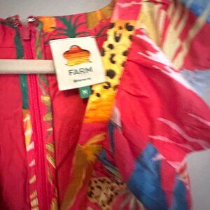 Farm Rio Tropical Jungle Midi Dress. Vibrant midi silhouette deep V dress covered in tropical pattern.