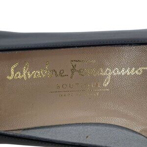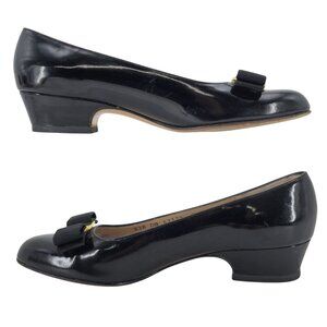 Vintage Salvatore Ferragamo Italy Womens 7B Black Leather Vara Bow Pumps Heels