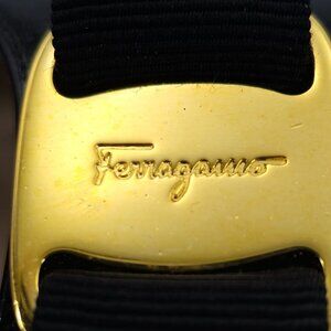 These vintage Salvatore Ferragamo Vara bow pumps exude timeless elegance and sophistication. Made in Italy, they feature glossy black patent leather, gold-tone hardware, and the iconic Vara bow design. The low heel ensures comfort without compromising on style, making them a refined choice for a polished look.