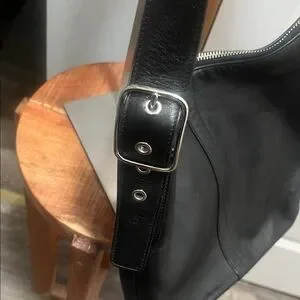Vintage black Coach Leather crossbody has one main compartment with a back zipper pocket and two pockets. Interior has the signature C’s. Has silver toned hardware and comes with a metal hang tag. Missing pull tag.