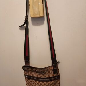 Authentic Gucci GG Supreme Unisex messenger bag featuring a classic brown leather monogram design with real leather strap and the signature statement Green and Red strap for that added Authentic Gucci look.Perfect for everyday use with a touch of luxury. Authenticity numbers engraved/stamped on the inside of Gucci tag.(see photos)