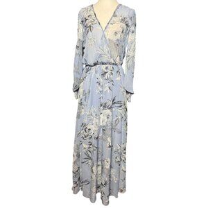 NEW Kate and Lily Womens Sz 6 Blue White Floral Print Maxi Dress Long Sleeve