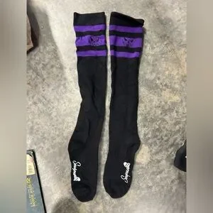 SOURPUSS PURPLE PUMPKIN LONG STRIPED SOCKS SZ 7-10 shoes goth punk