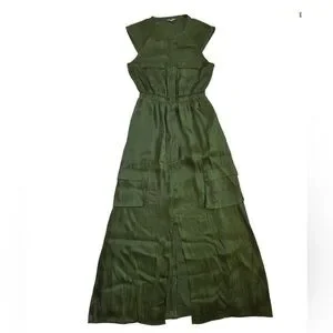 Guess Olive Green Military Style Cargo alike Pockets Maxi Dress