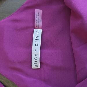 Get ready to turn heads with this stunning Alice + Olivia Fierra Racerback Dress in deep burgundy/purple color. This dress is perfect for any occasion, whether you're attending a wedding, a party, or just going about your day. The dress is made of 96% silk and 4% spandex, making it lightweight and comfortable to wear. The dress features a V-neckline, spaghetti straps, and a pullover closure. It's a classic and minimalist design that's perfect for any season.