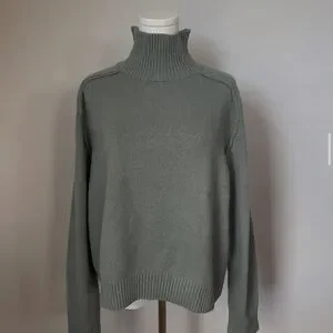 Stylish olive sweater with ribbed texture. Ideal for layering.