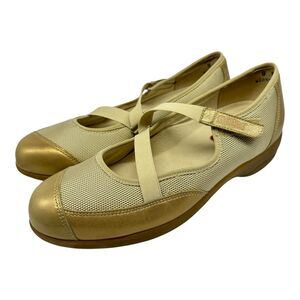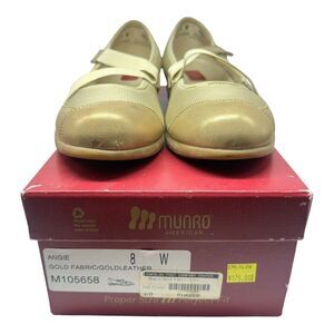 Munro American Comfort Mary Jane Size Wide Flats Gold Fabric & Leather 8 W