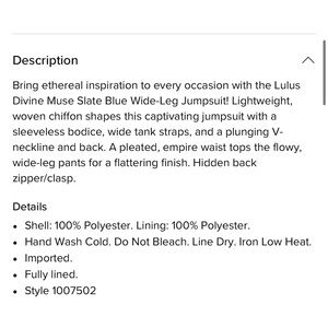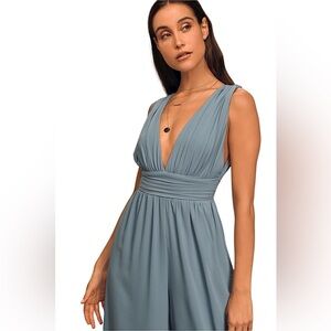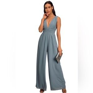 Lulus Divine Muse Slate Blue Wide Leg Jumpsuit Size XS NWT