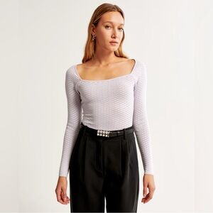 Abercrombie & Fitch Women’s Bodysuit Long Sleeve Squareneck Pointelle Lilac | S