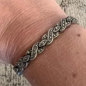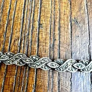 Vintage silver bracelet with Marcasite filigree look, 7.5” in length, double clasp, .925 silver made in Thailand Gentle used condition.