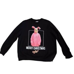 This is sure to bring a smile during the holidays! Fun sweatshirt features a graphic of Ralphie from the classic holiday film A Christmas Story. Big oversized for comfort and warmth.
