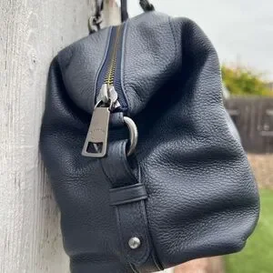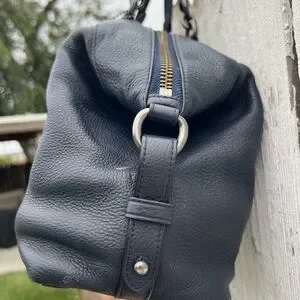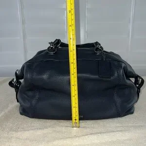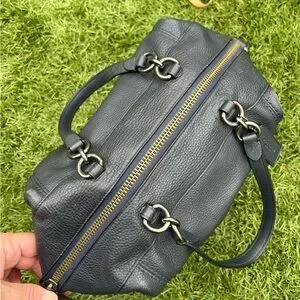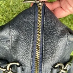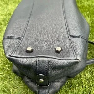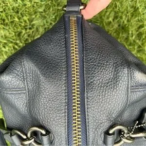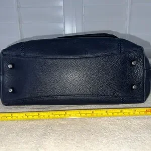 Pebbled Leather; Black Fabric Interior; 1 interior zipper pocket and 2 multi use slip pockets; Zipper closure; Dual handles with 5" drop; 14" x 8" x 4,75"
