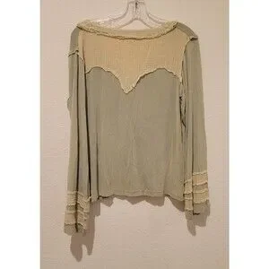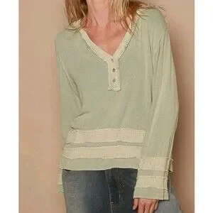 Nwot POL Ribbed Long Sleeve Henley Shirt Top Green Distressee Oversized Small