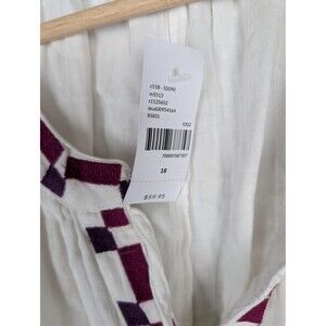Lane Bryant Blouse Womens 18 White Embroidered Boho Peasant Top Long Sleeve Tassel